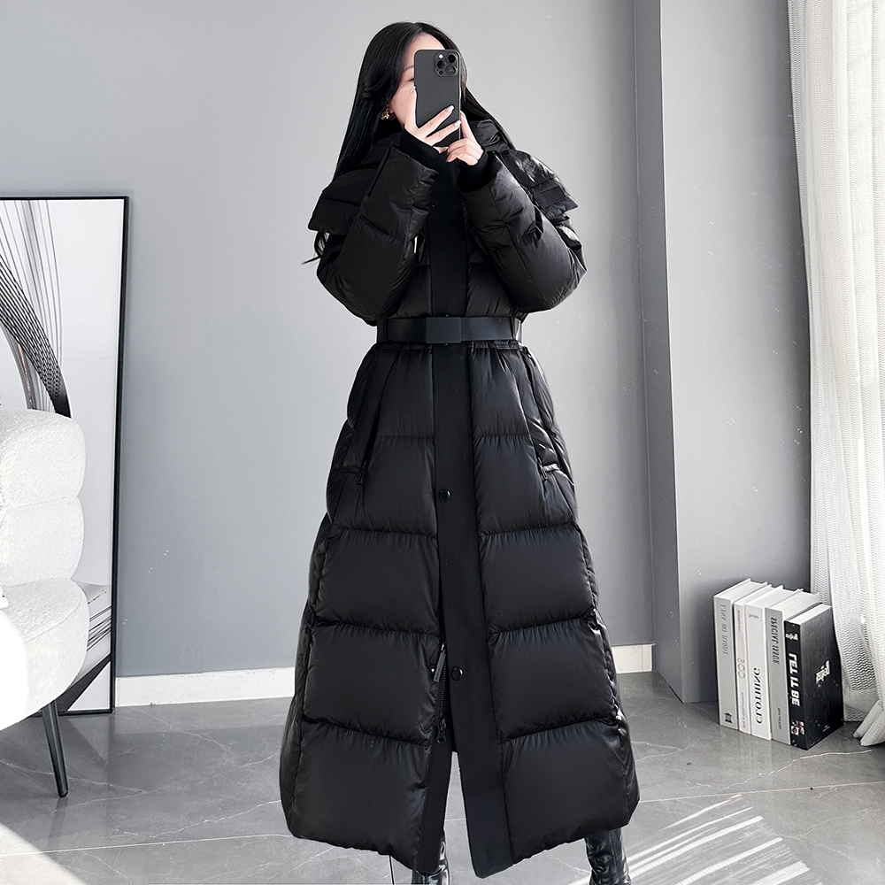2024冬季新款 修身显瘦连帽加长加厚长款羽绒服女长过膝超长款潮