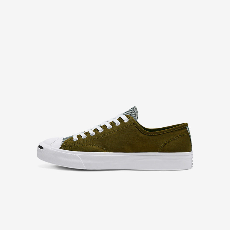 Converse匡威 橄榄绿格纹撞色JP开口笑低帮男女款帆布鞋 168677C
