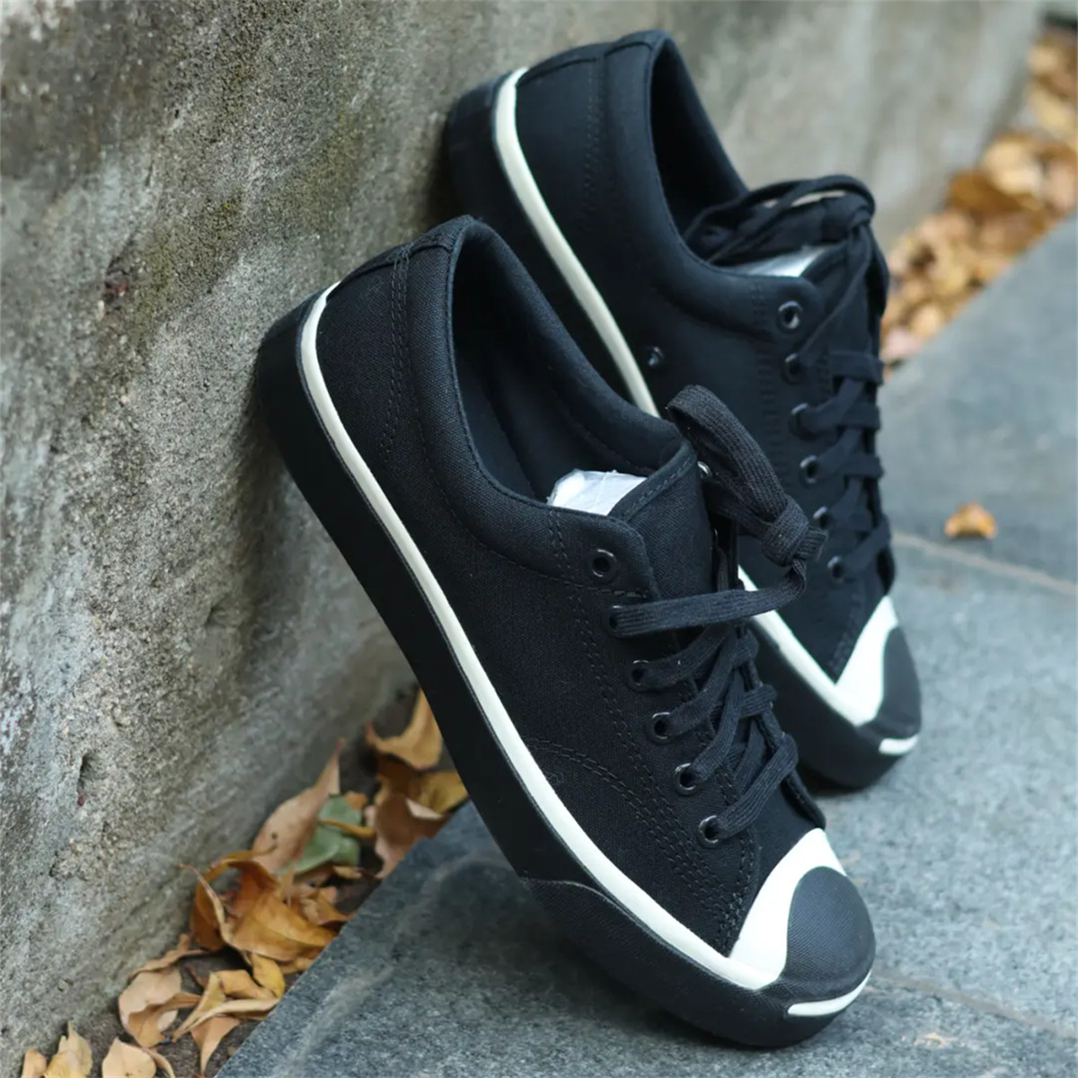 Converse Jack Purcell 正品匡威开口笑日系低帮帆布鞋黑色/白色