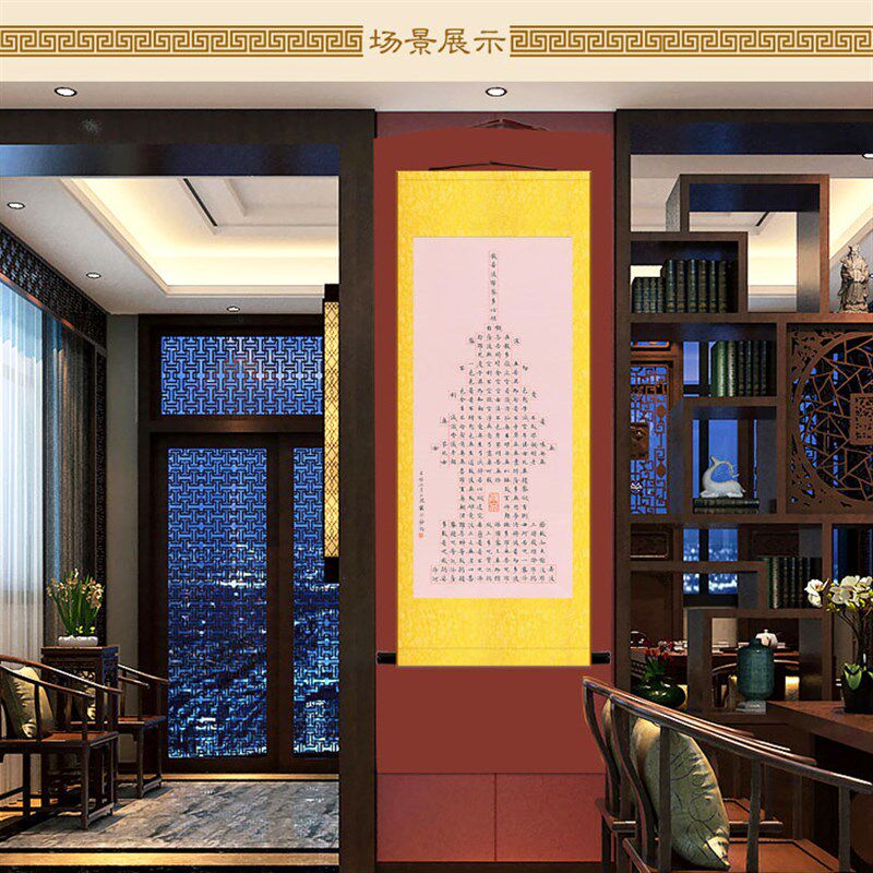 心经书法卷轴挂画 般若波罗蜜多心经 经塔图装饰字画绢布材质定制