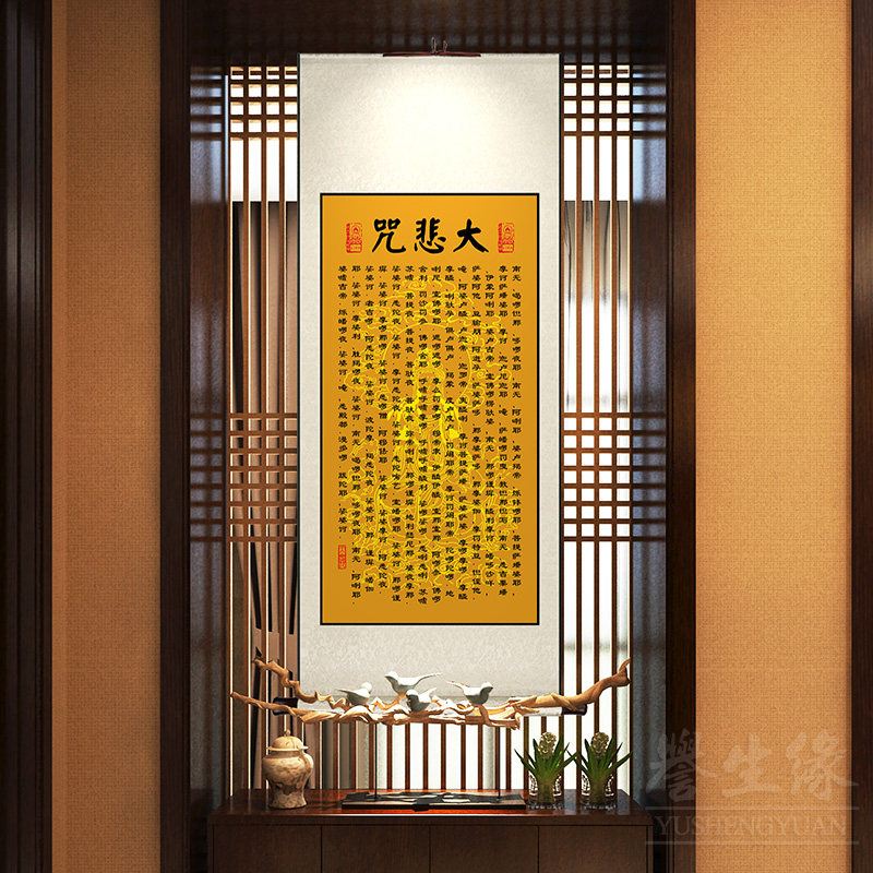 心经字画挂画大悲咒吉祥经文中式卷轴佛堂念佛客厅壁画玄关装饰画