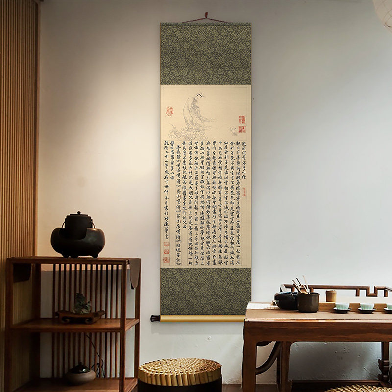 新品来图定制新中l式心经卷轴挂画茶室佛经禅意书房般若菠萝蜜装