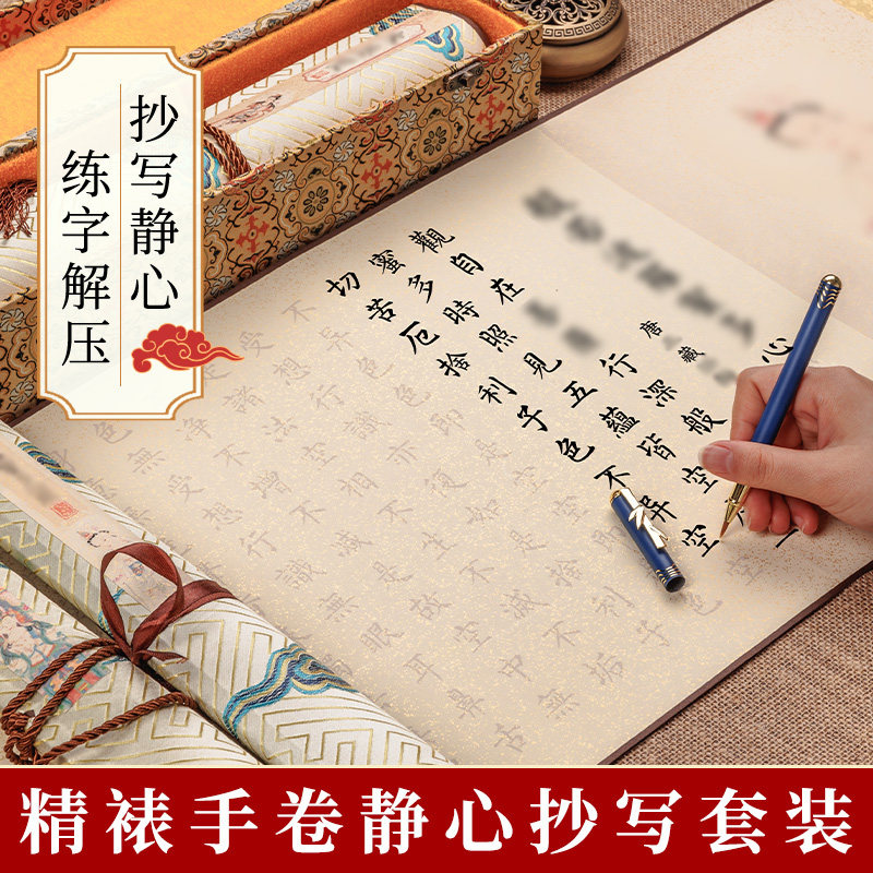 经心卷轴精裱静心临摹抄经长卷卷轴作品纸空白吉祥经大悲咒礼盒装