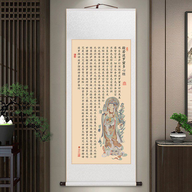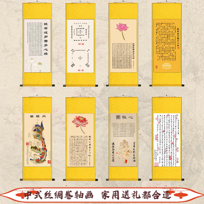 心经挂画大悲咒佛堂玄关卷轴字画装饰画客厅竖版吉祥经丝绸卷轴画
