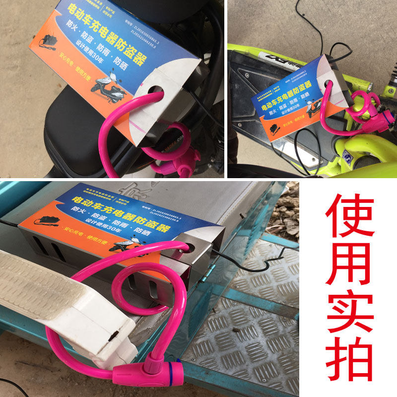 电动车充电器防盗锁电瓶车户外充电保护充电器防偷神器铁质钩锁绳
