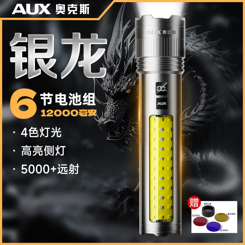 奥克斯银龙强光手电筒远射超亮大功率长续航大容量超亮户外充电式