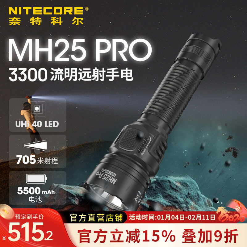 奈特科尔MH25 PRO强光手电筒远射超亮户外应急夜爬山装备安防巡逻