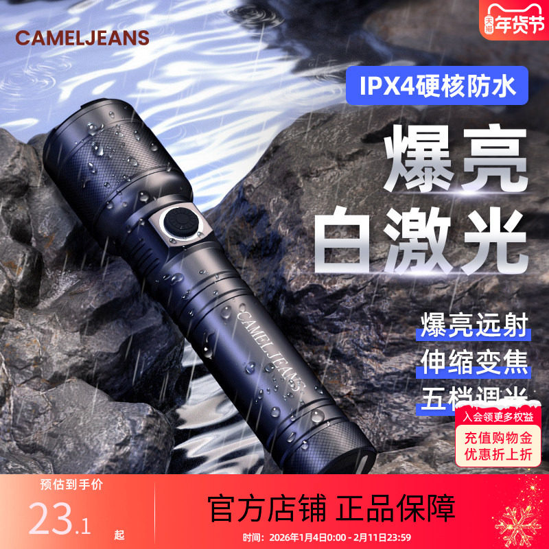 CAMELJEANS强光手电筒远射超亮户外IXP4防水便携超长续航充电LED