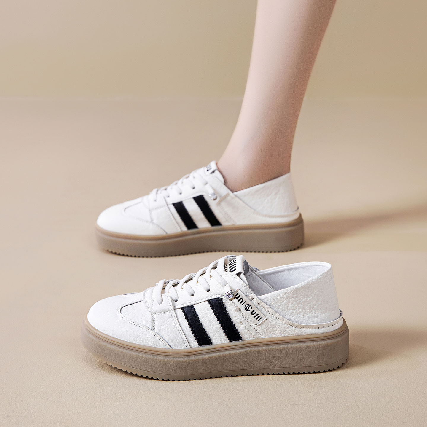2025新春款韩版百搭一脚蹬女鞋平底懒人学生鞋软底真皮薄款小白鞋