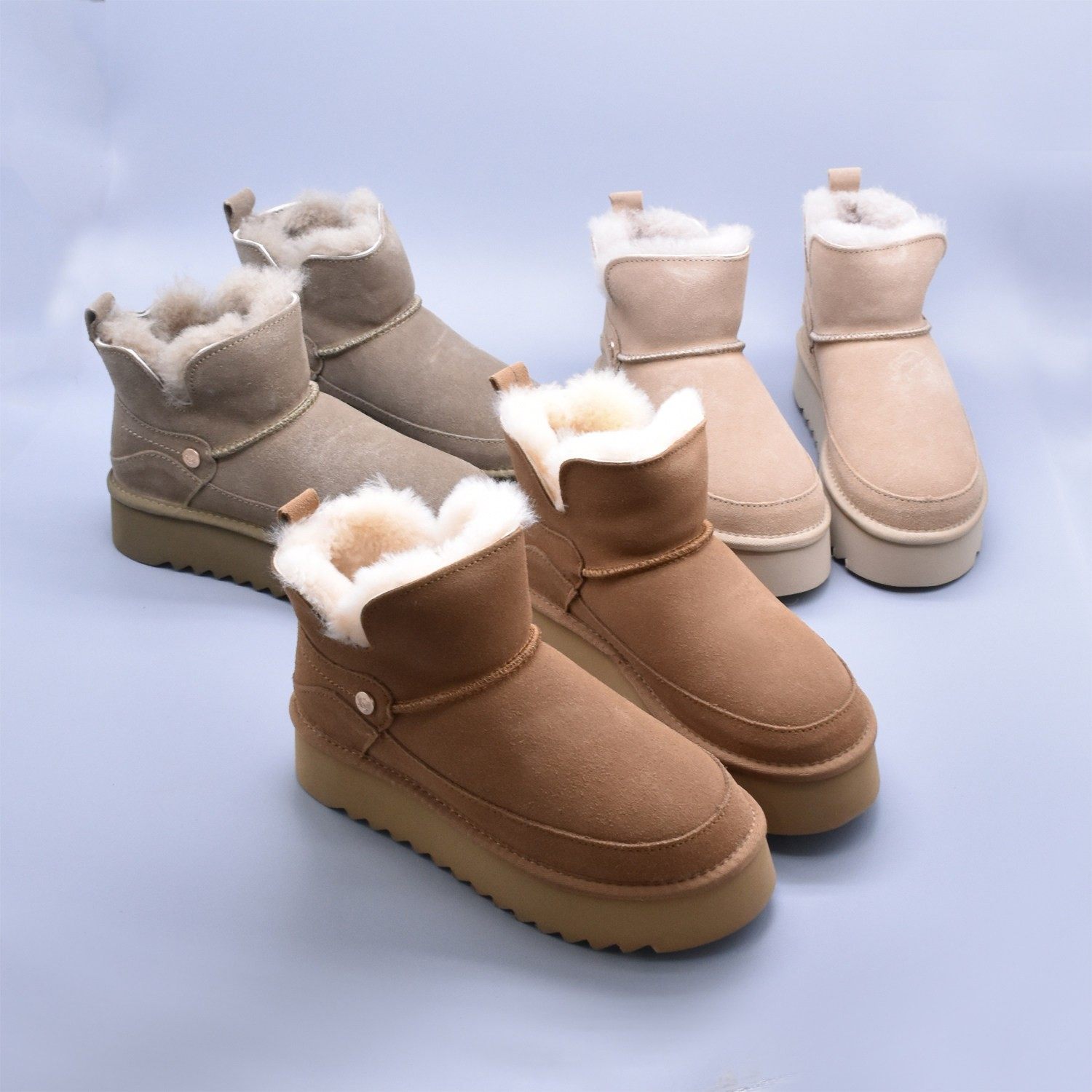 冬季加厚麦穗边雪地靴女短筒懒人一脚蹬保暖厚绒防滑学生牛皮棉鞋