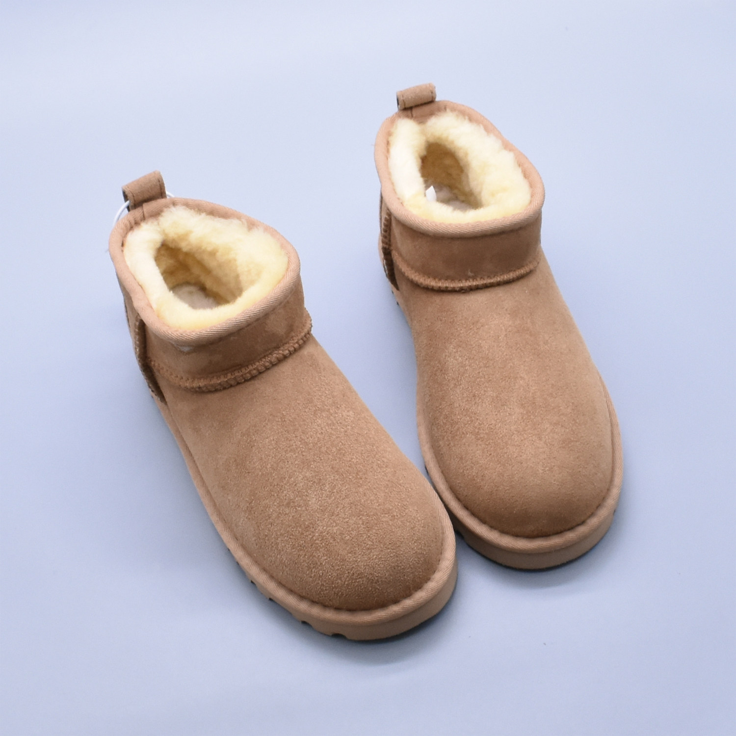 短筒羊皮毛一体雪地靴女懒人一脚蹬保暖羊毛防滑学生轻便真皮棉鞋