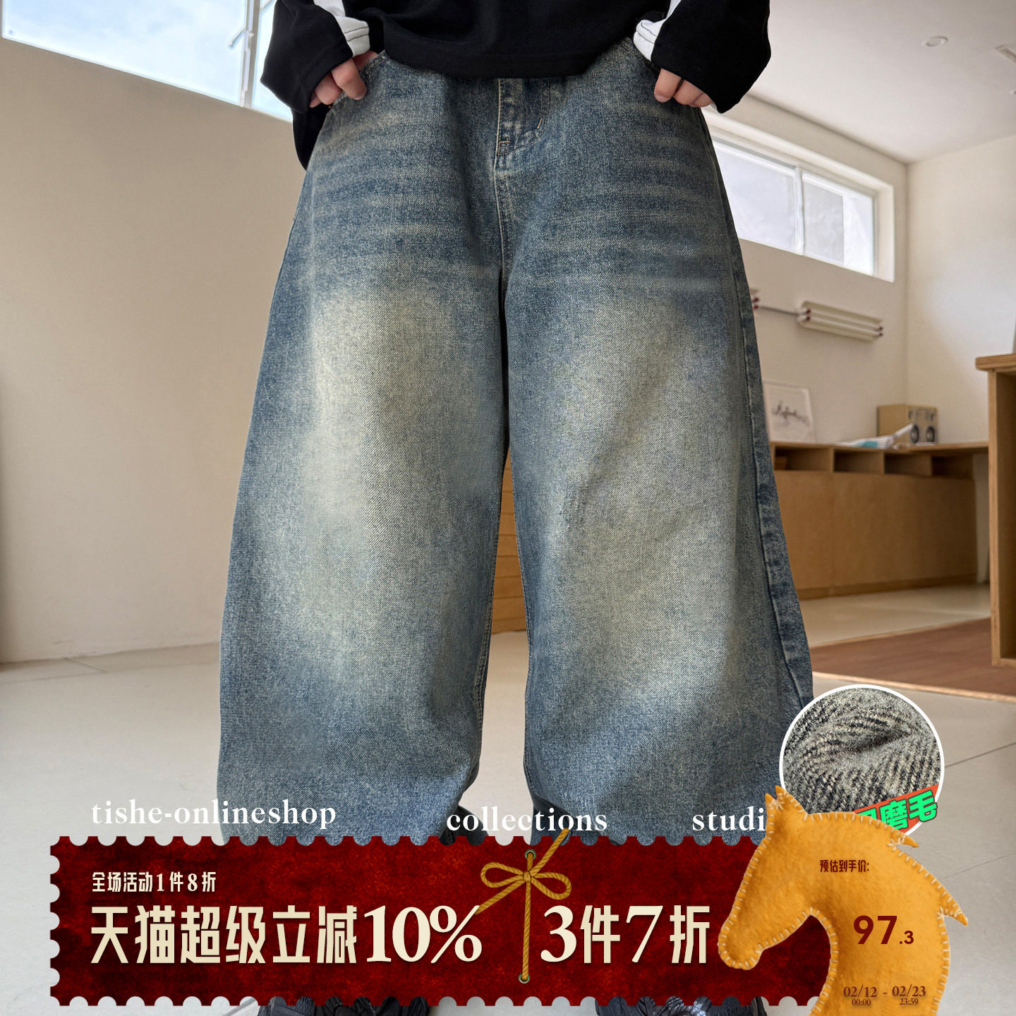 蓝汽水2026春季新款中大男童长裤潮酷牛仔裤青少年复古直筒休闲裤