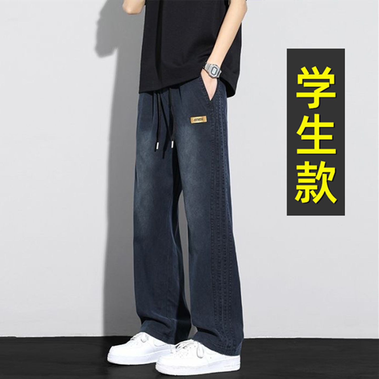 春秋季松紧腰2025牛仔裤男生百搭ins青少年宽松休闲直筒阔腿长裤