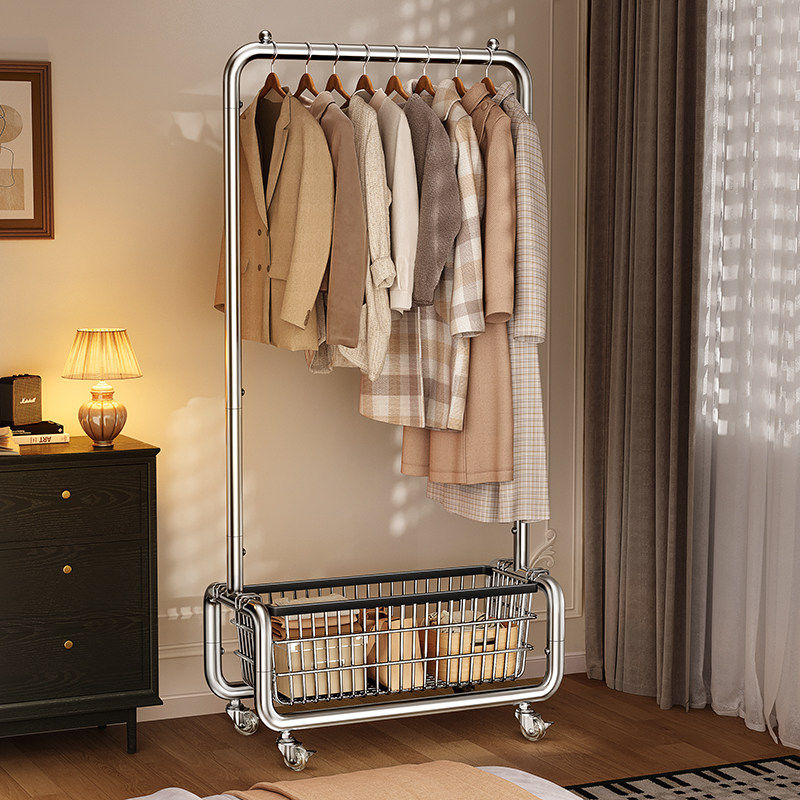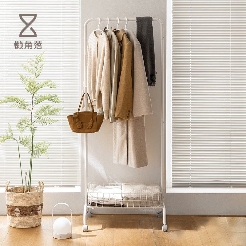 奶油风落地卧室挂衣架网红可移动带轮家用简易衣架阳台晾衣帽架子
