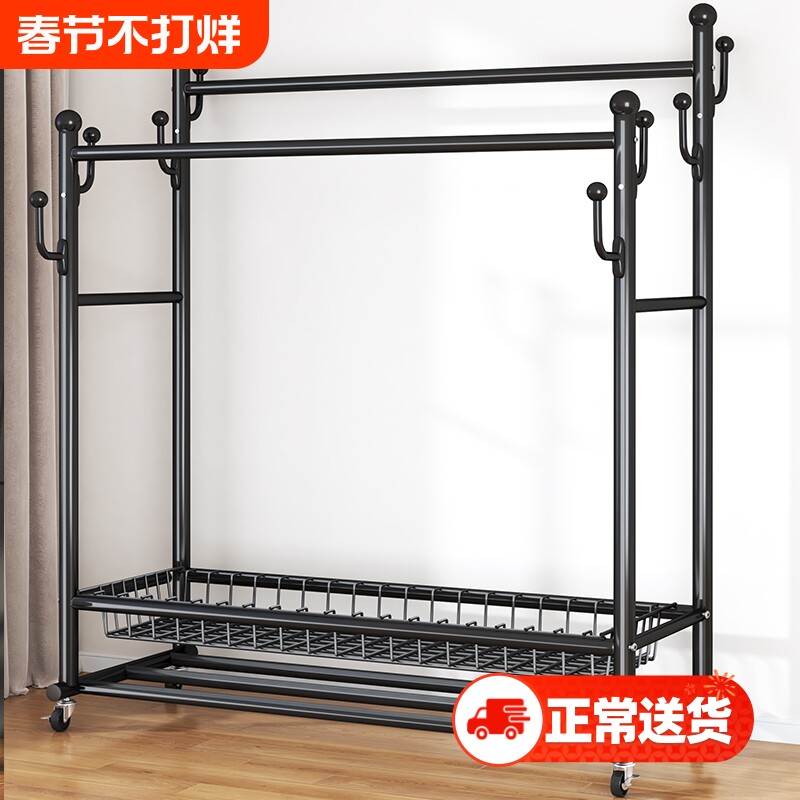 特粗双杆移动宿舍衣帽架特厚衣架落地立式家用卧室阳台挂衣架简约
