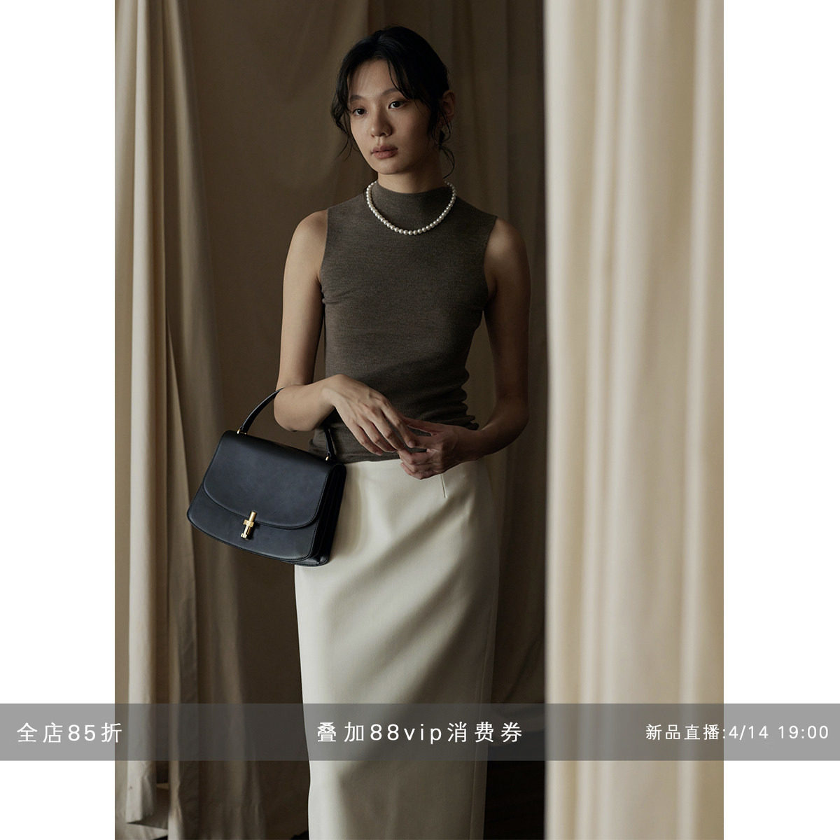 SINGLE MOMENT 26SS法式夏季半高领小飞袖修身褶皱T恤无袖上衣女