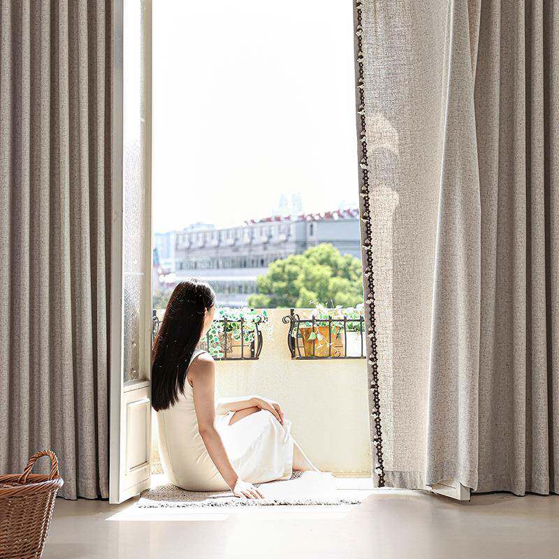 法式复古日式亚麻窗帘遮光奶油色透光不透人客厅阳台衣柜防尘纱帘
