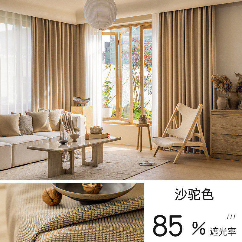 2025奶茶色棉麻日式窗帘遮光2024新款客厅卧室高级感轻奢现代简约