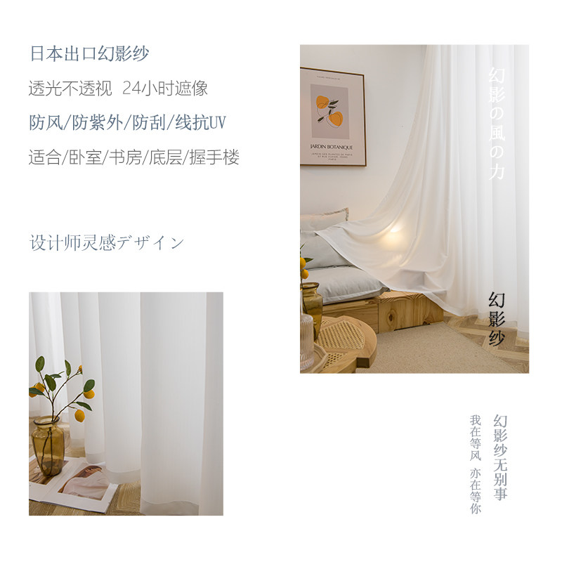 日式窗帘纱帘透光不透人卧室幻影纱防勾丝飘窗纱幔阳台纱白纱梦幻