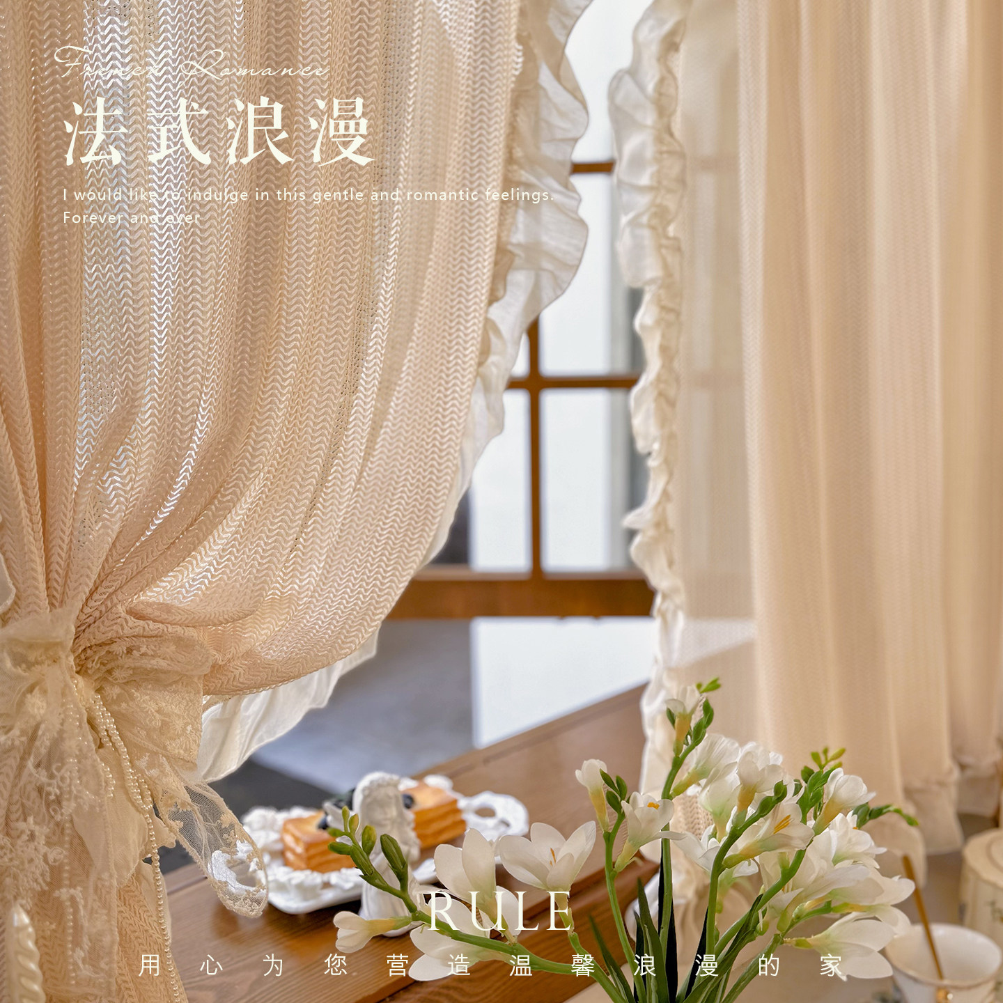 奶油风法式纱帘日式窗帘透光不透人半遮光飘窗书房厨房免打孔安装