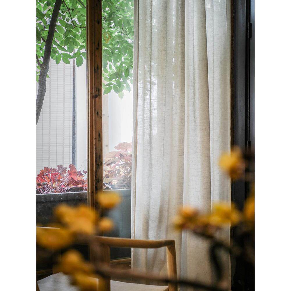 日式窗帘仿棉麻亚麻纱帘中古风客厅中式复古仿古卧室飘窗窗纱透光