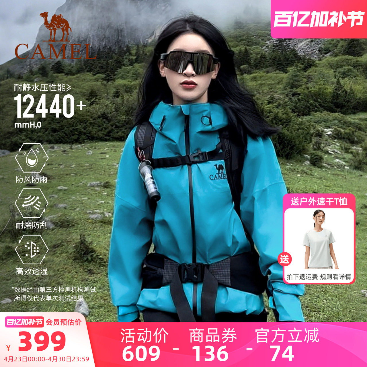 骆驼户外潜水蓝雨神冲锋衣女款防风防水轻量硬壳外套男单层登山服