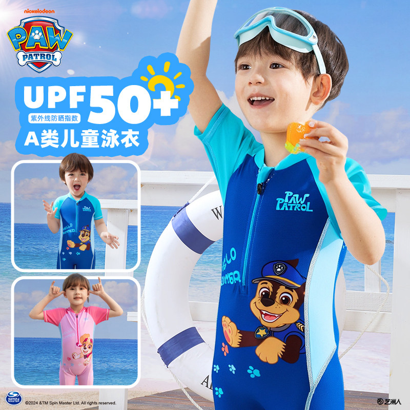 汪汪队儿童泳衣连体短袖男童夏季防晒A类女童宝宝新款2岁3岁泳装