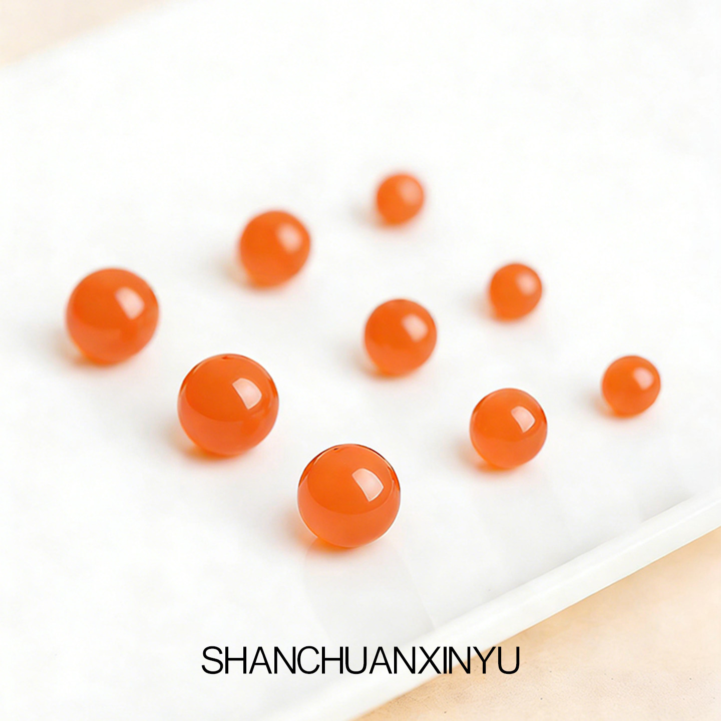 天然保山南红散珠玛瑙圆珠子柿子红单珠手串隔珠佛珠星月菩提配珠