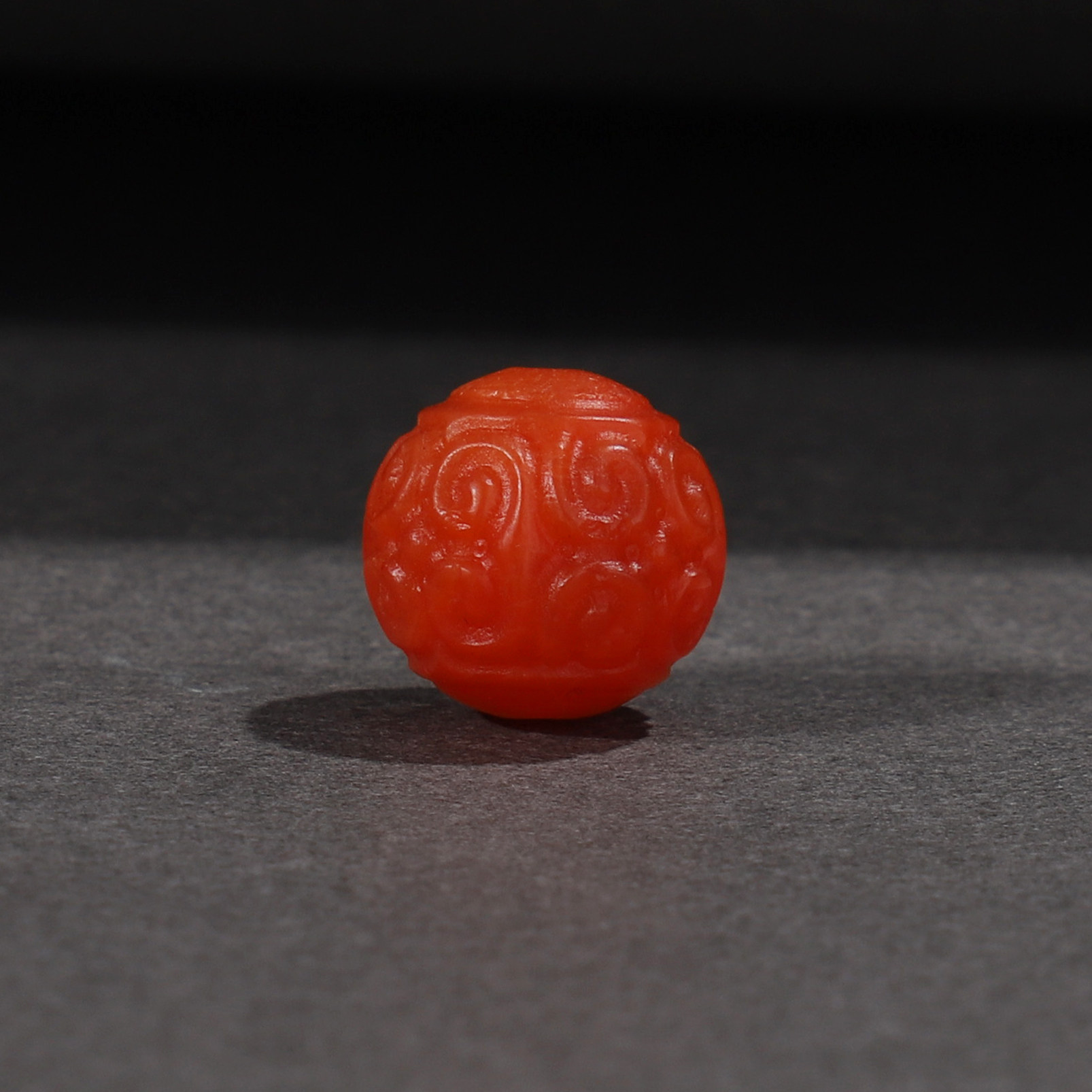 【保山南红莲花单珠9mm】 天然保山南红散珠 杨柳料 满色满肉
