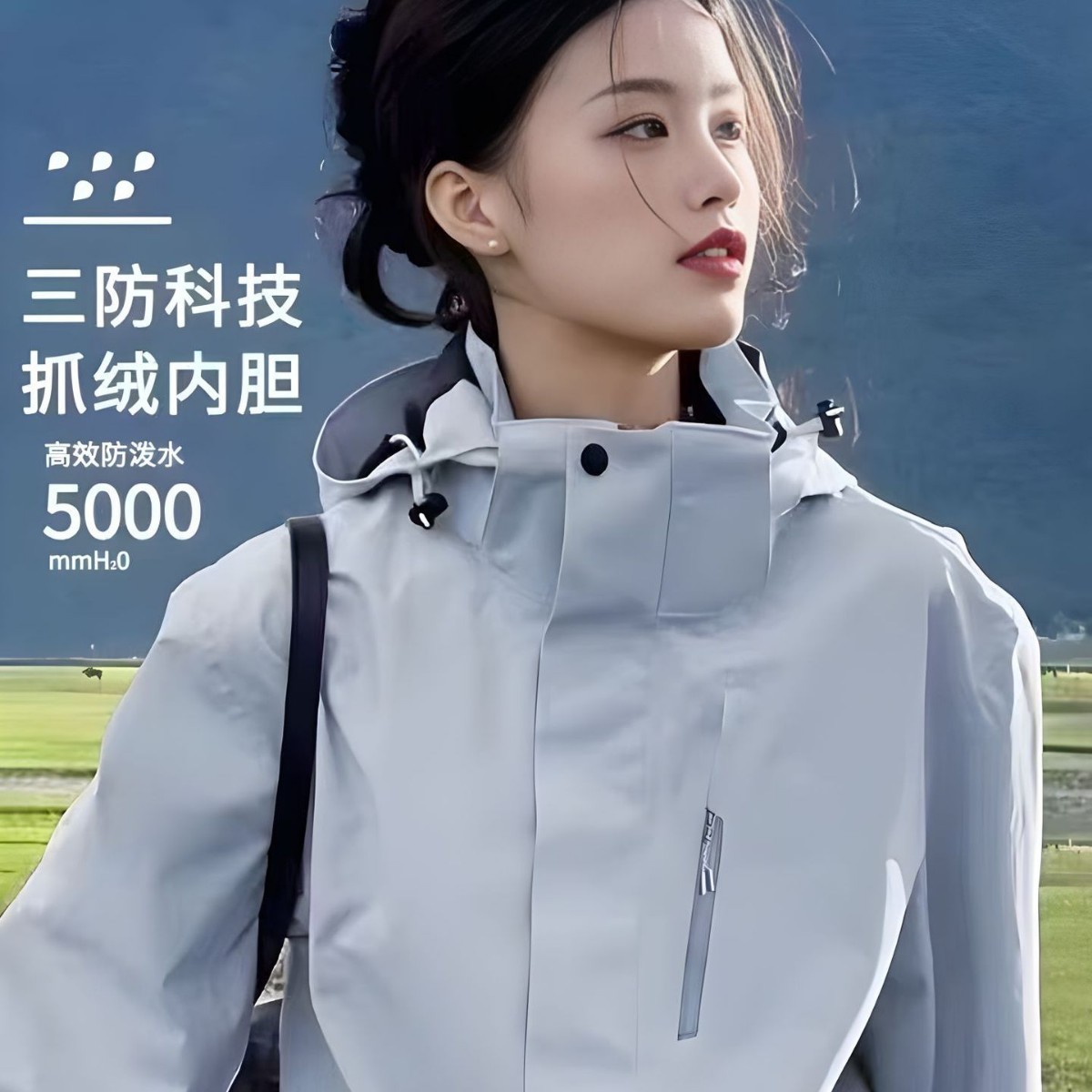 山系冲锋衣女春秋西藏户外三合一两件套抓绒内胆美式情侣外套潮牌