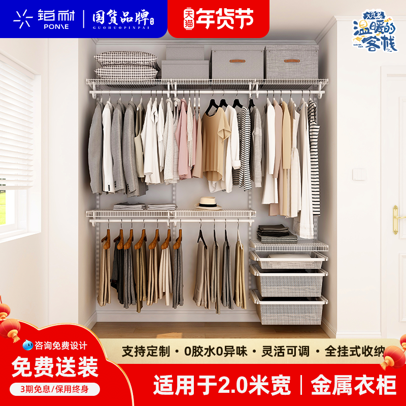 铂耐开放式衣帽间定制小户型整体金属衣柜组合置物架1.8砌墙衣橱