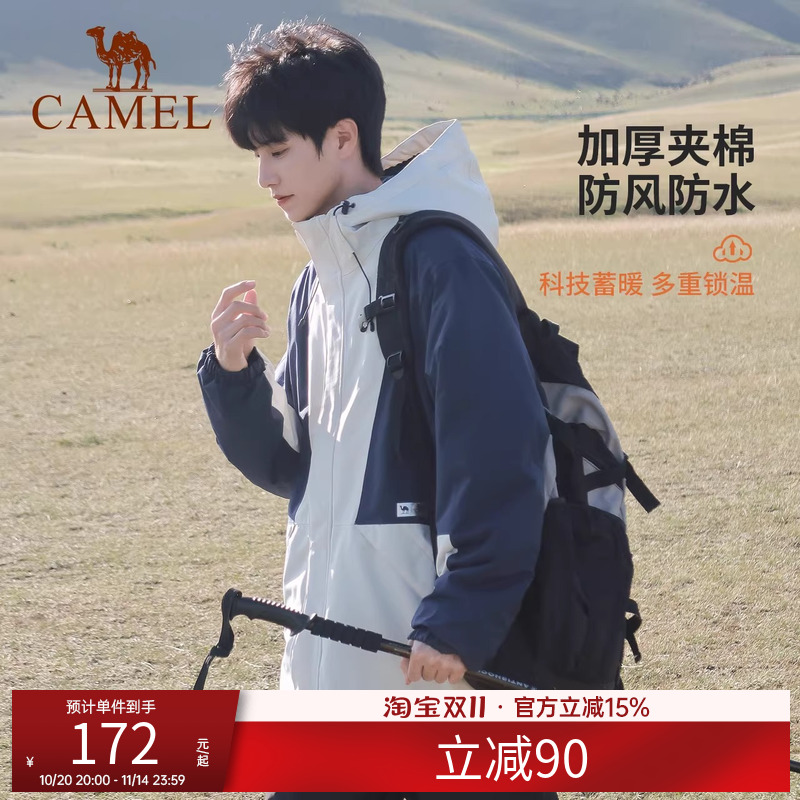 [双11预售]骆驼户外加厚棉服冲锋衣男防风防水外套夹棉拼色登山服