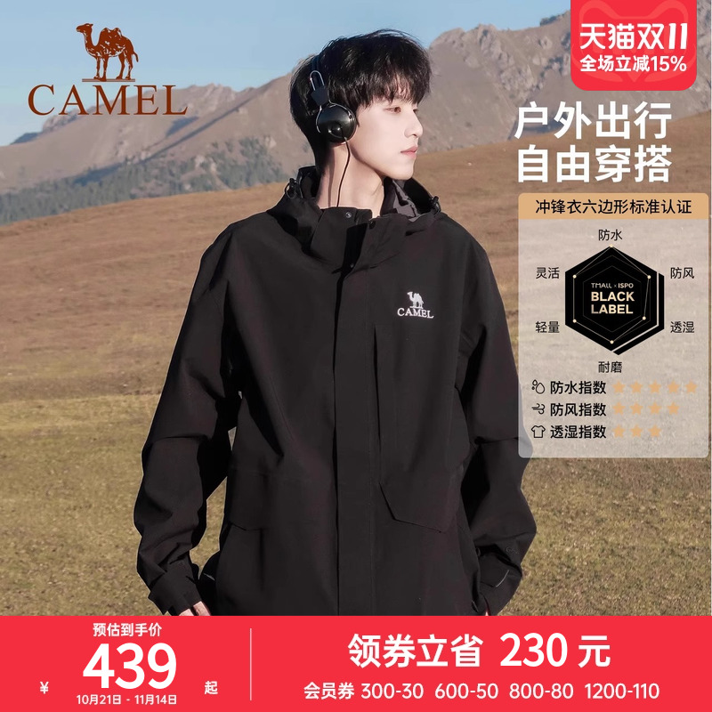 骆驼3514冲锋衣女三合一羽绒服黑色外套男户外防风防水旅游登山服