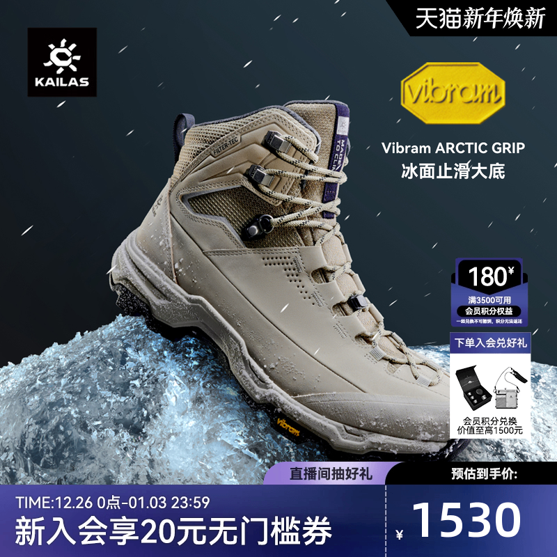 凯乐石徒步登山鞋男冬季保暖加绒中帮V底冰面防滑FLT防水户外鞋女