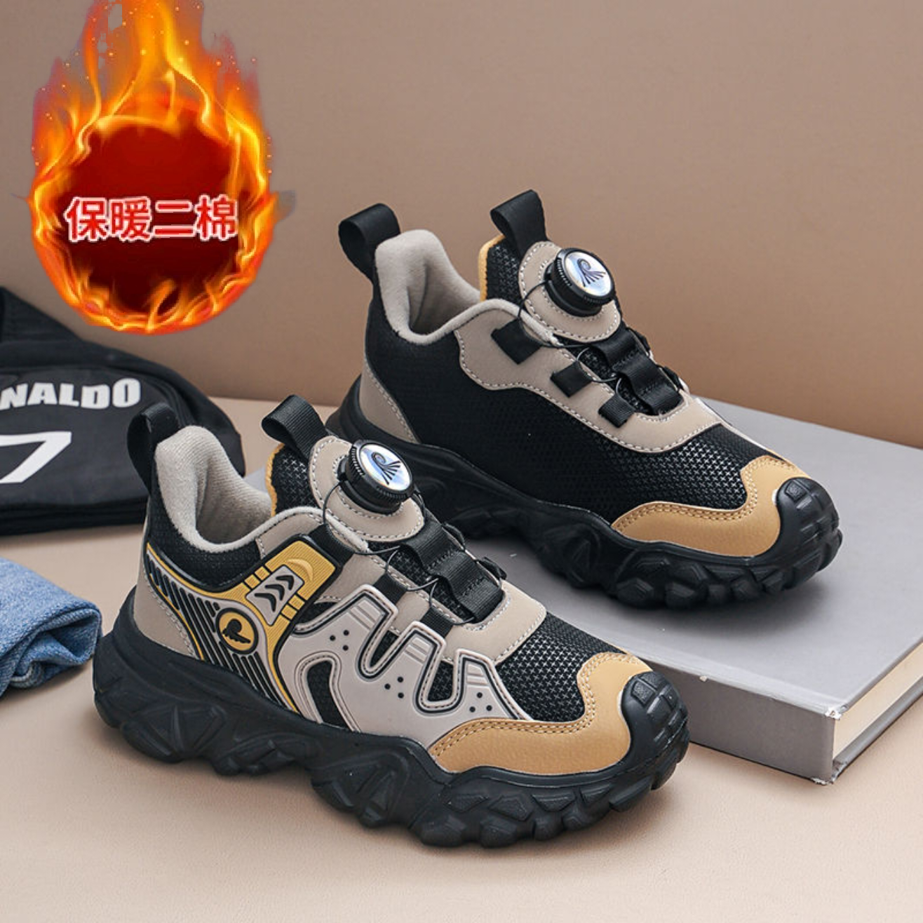 2025冬季男童鞋子皮面防水户外鞋中大童运动鞋儿童老爹鞋男孩薄绒