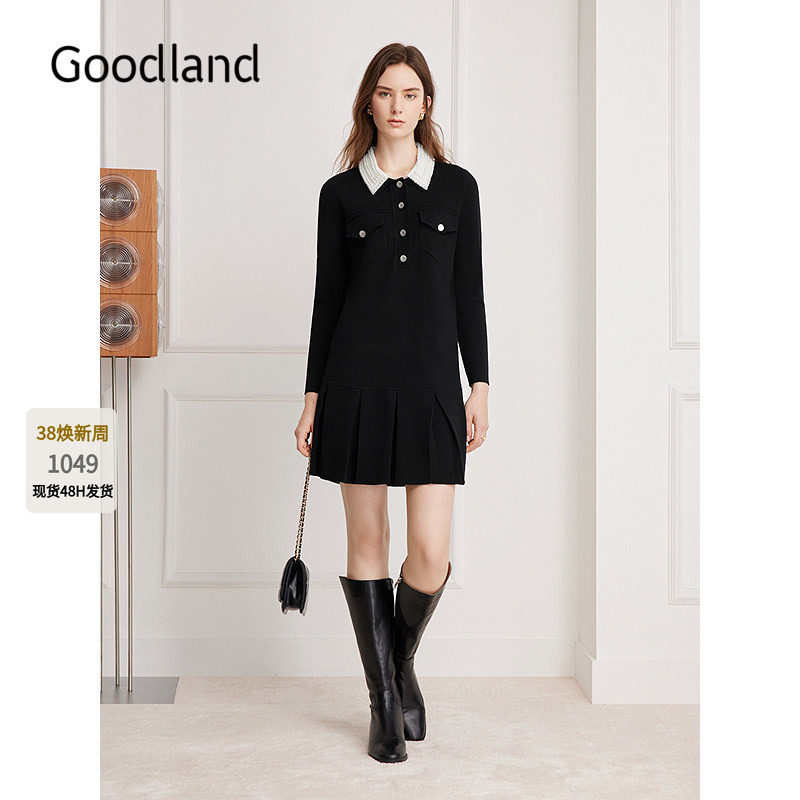 Goodland美地珍珠可拆卸翻领针织连衣裙2025冬季新款LC35506597