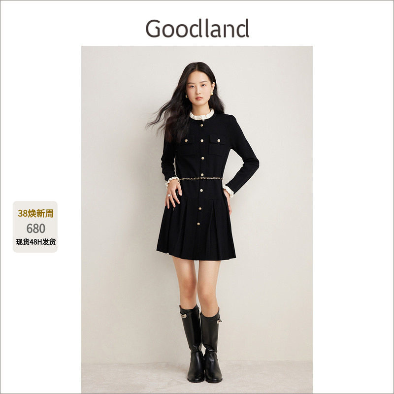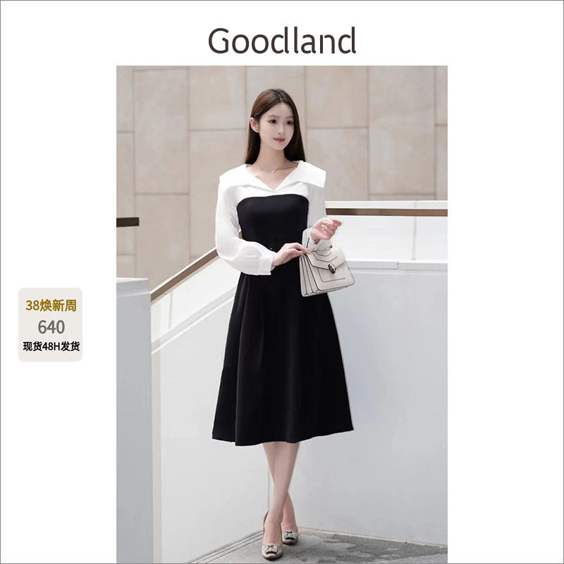 Goodland美地女装假两件气质法式收腰连衣裙女秋季LC34305270