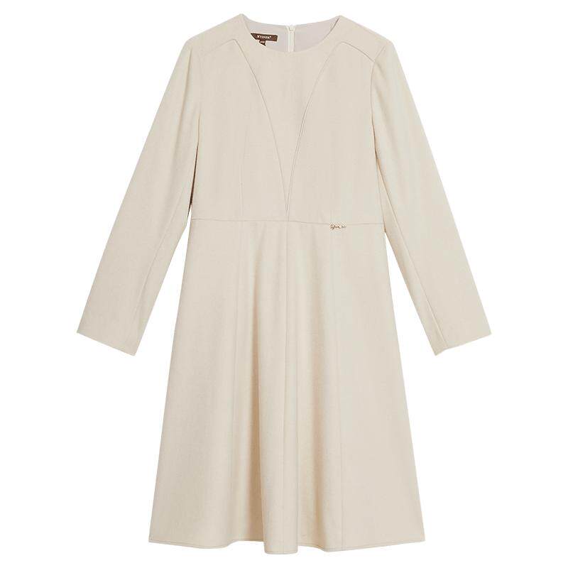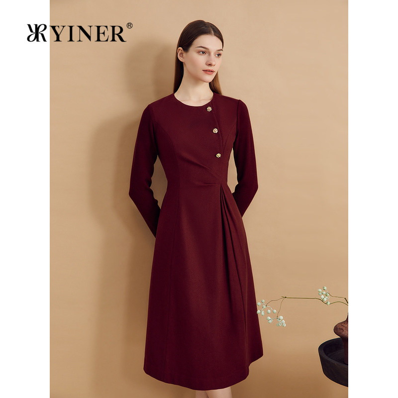 【中国红】YINER音儿专选2025春季新款美丽诺羊毛A字收腰连衣裙