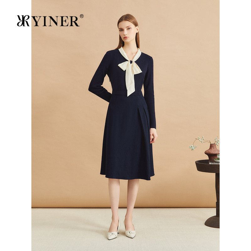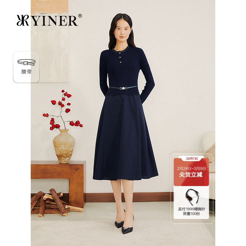 【优雅衣橱】YINER音儿专选女装冬季时尚法式香风撞色针织连衣裙