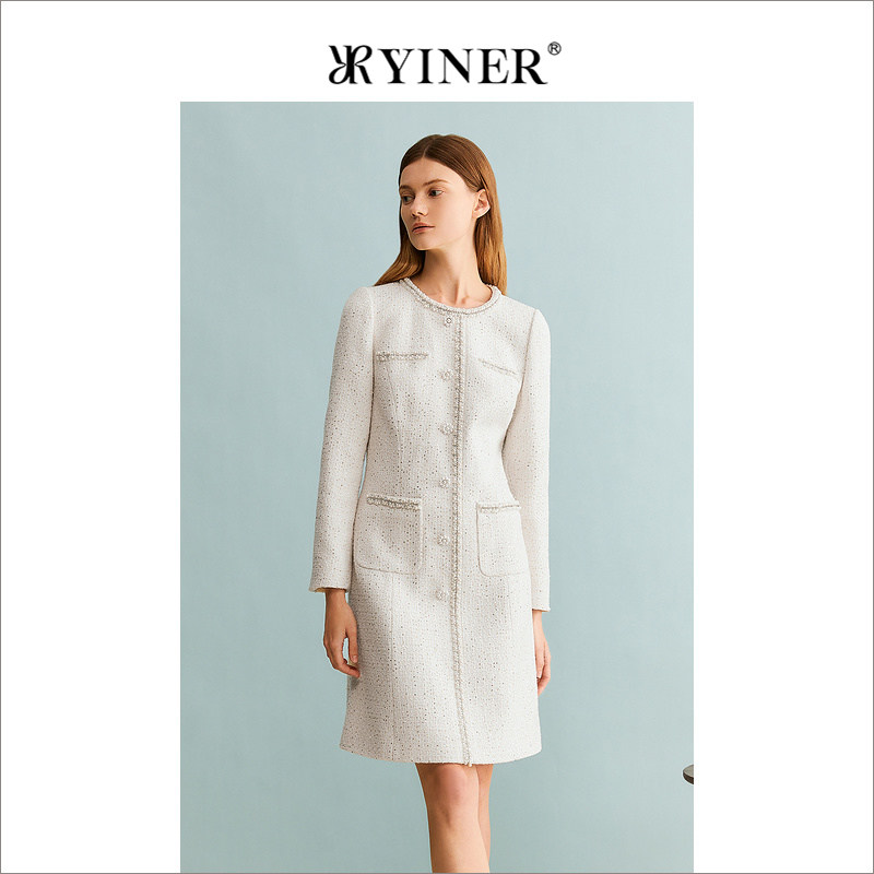 【名媛小香风】YINER音儿专选冬季女装法式钉珠装饰粗花呢连衣裙