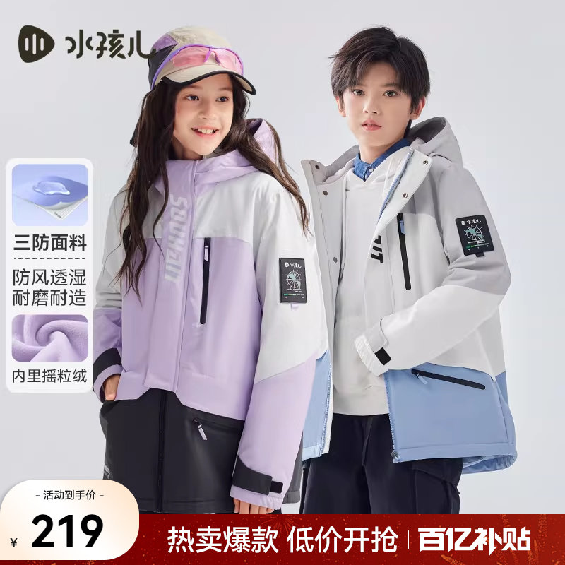 水孩儿儿童外套春秋冬装加绒男童宝宝女童大童连帽厚山系户外风衣