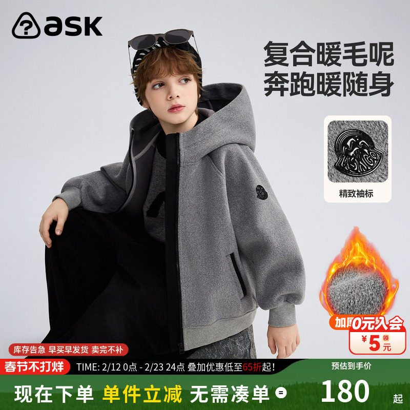 ask儿童外套2026春秋冬新款男女童潮酷衣服中大童休闲上衣