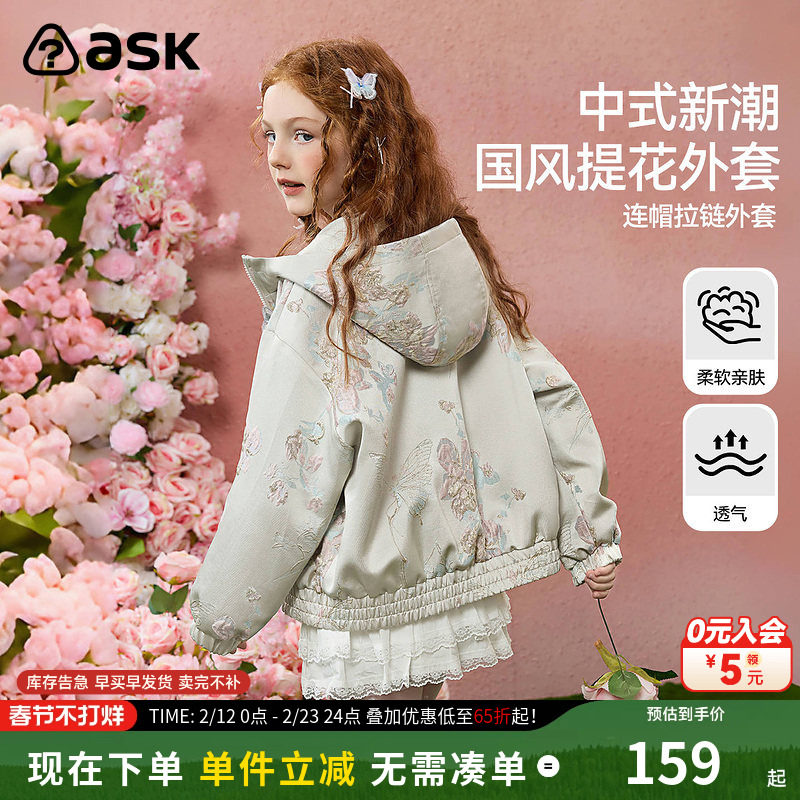 ask儿童小香风春秋装2026新款女童外套中大童女孩连帽洋气上衣潮