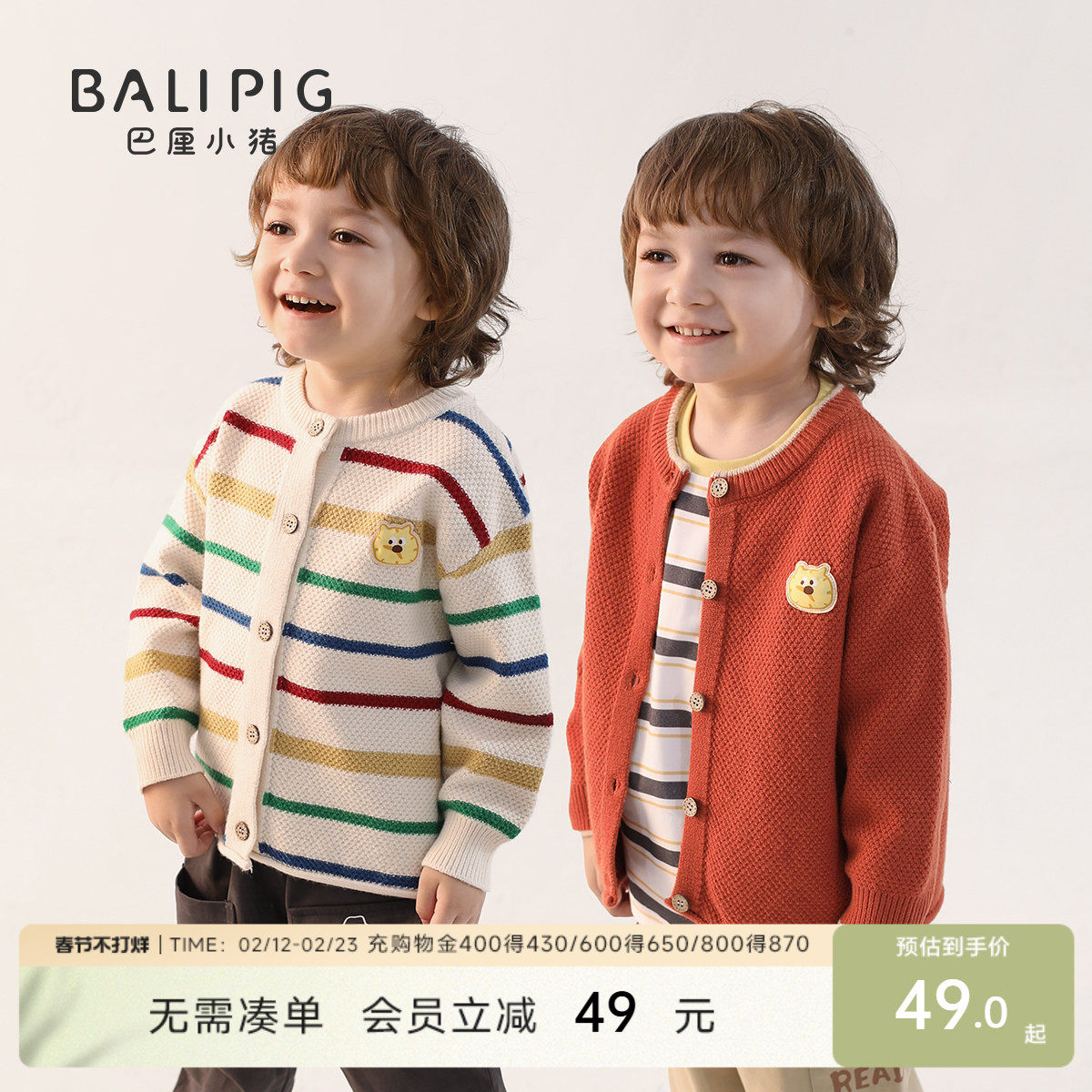 [过年服]威尔贝鲁宝宝毛衣开衫春秋学院风男女童针织外套洋气时髦