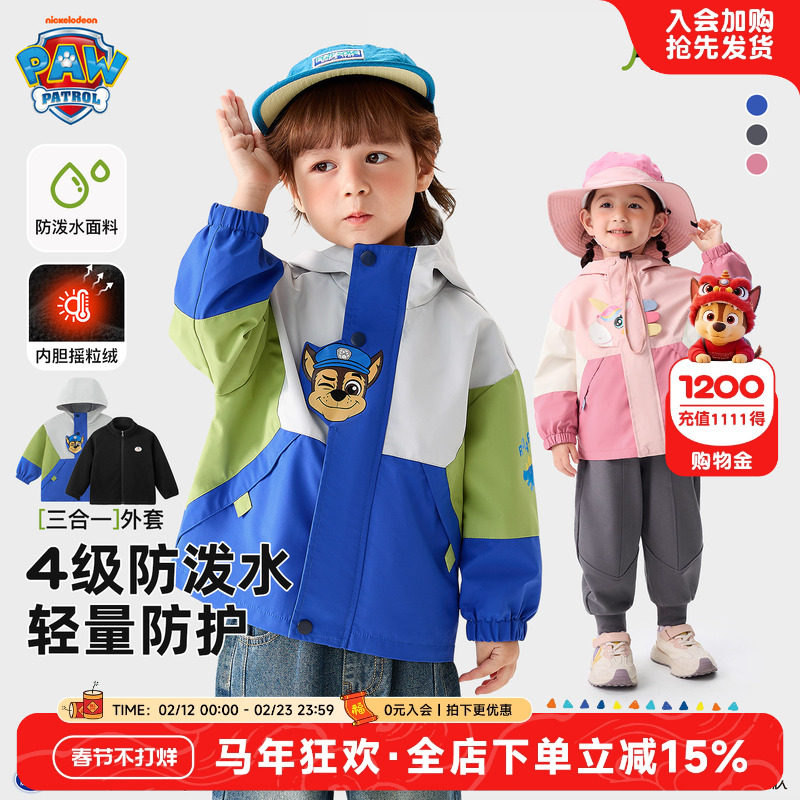 汪汪队男童冲锋衣类型外套春秋儿童外套女童宝宝户外服秋冬三合一