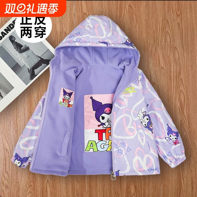 女童外套春秋款2025新款小女孩秋季洋气库洛米上衣女宝夹棉冲锋衣