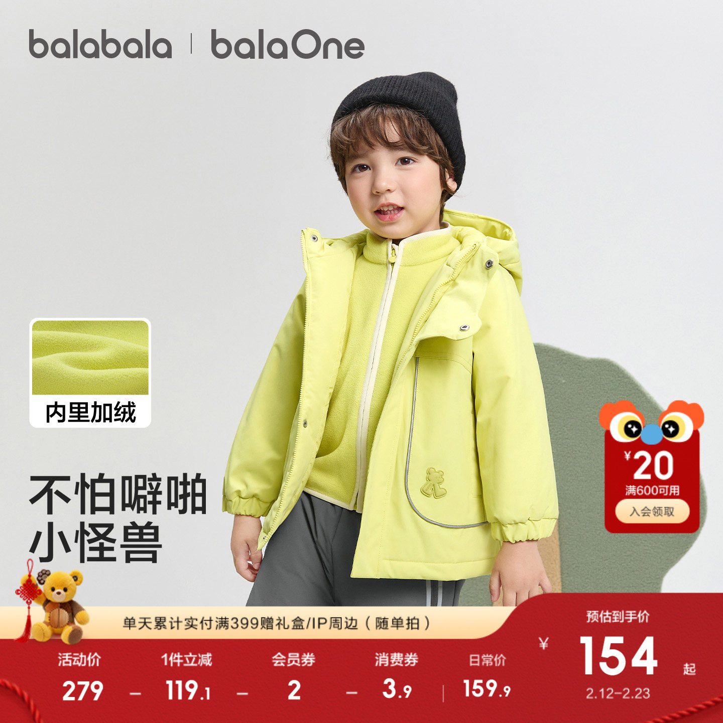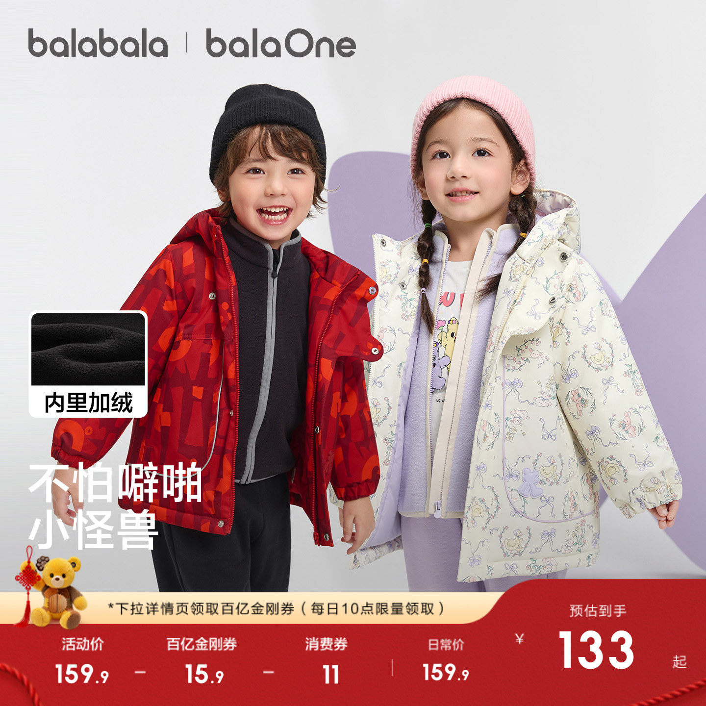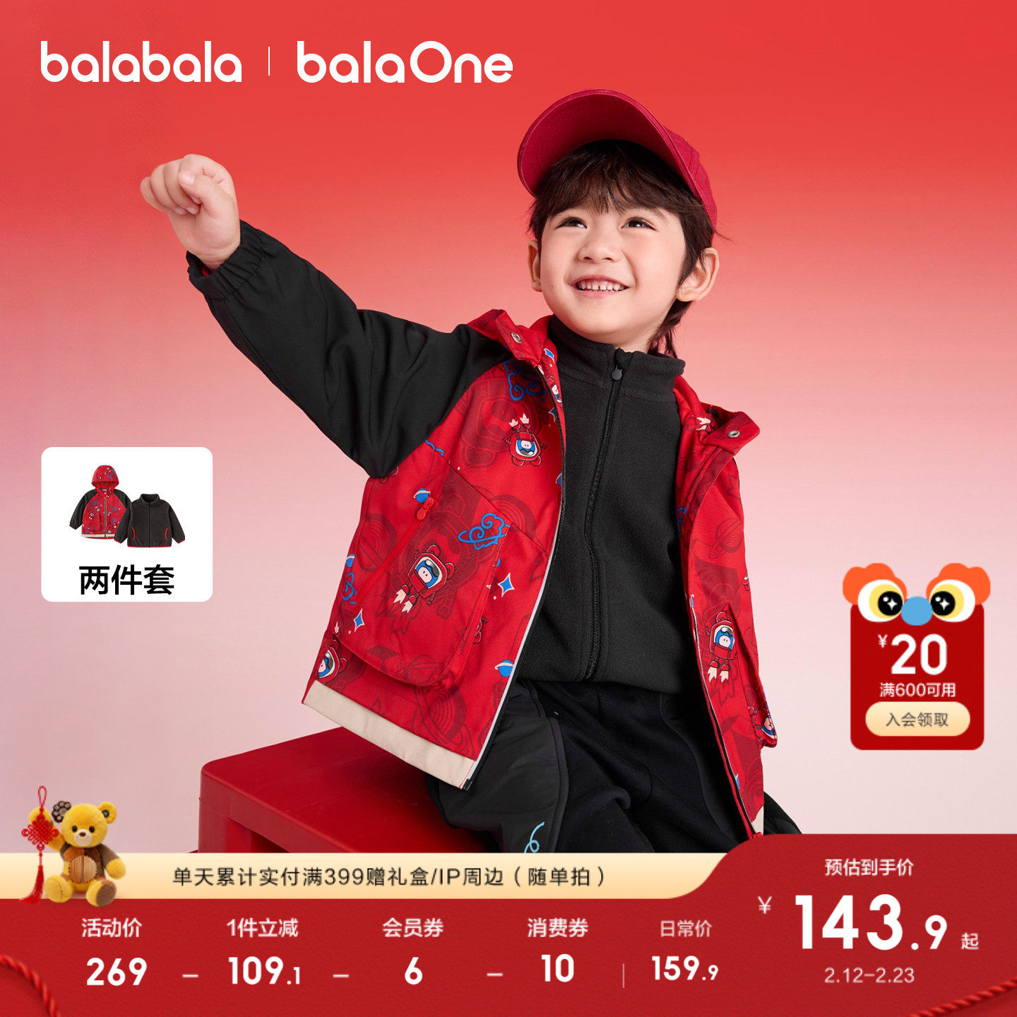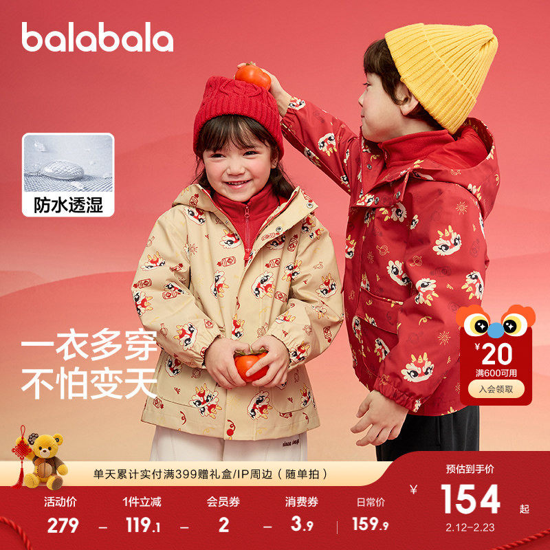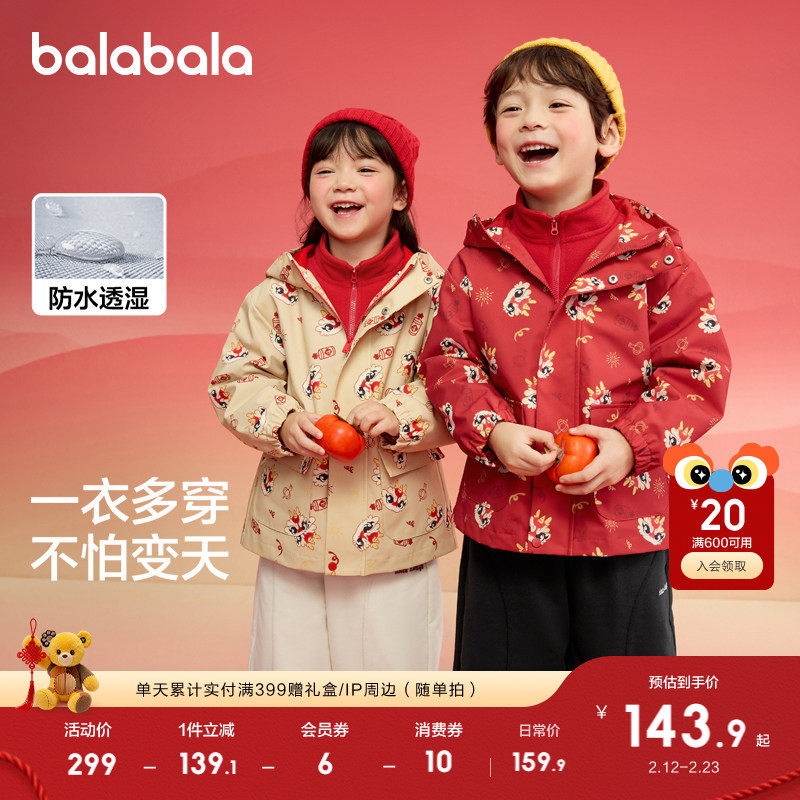 巴拉巴拉童装儿童上衣男童外套女童两件套春秋2026新款三防拜年服