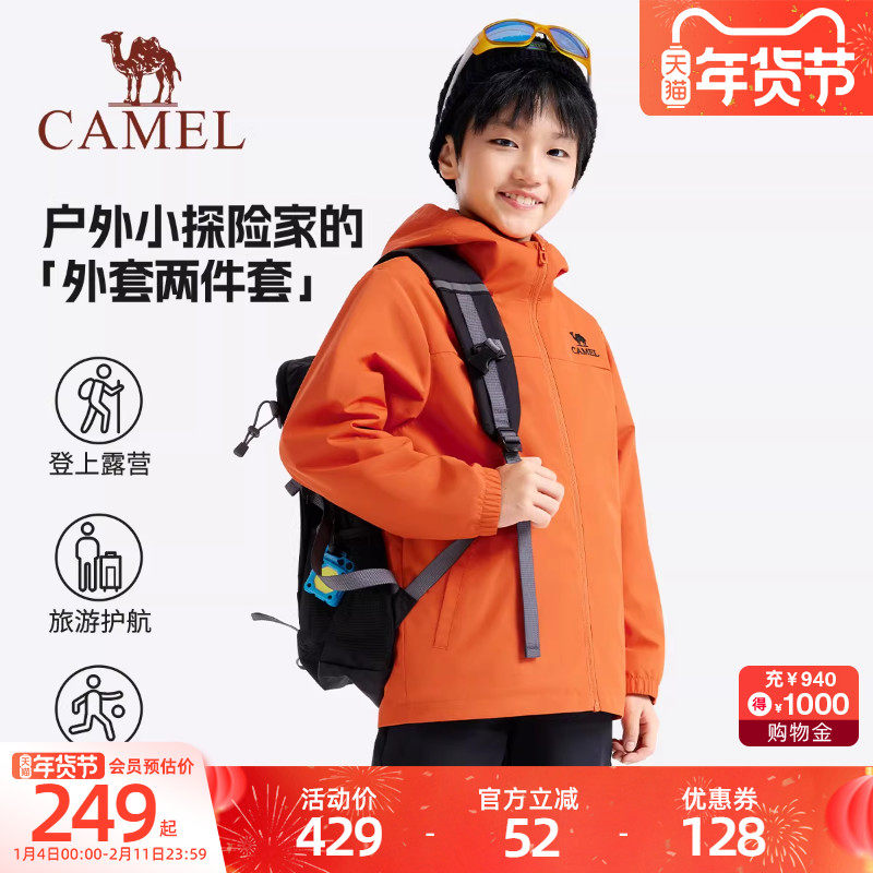 小骆驼儿童外套男女童2026春秋款夹克连帽户外女童登山服抓绒上衣