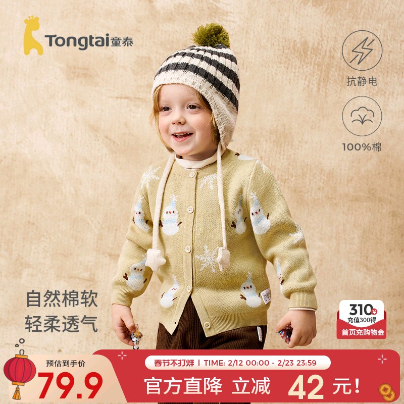 童泰宝宝外套春秋季纯棉婴儿衣服儿童休闲外出上衣男女童针织开衫