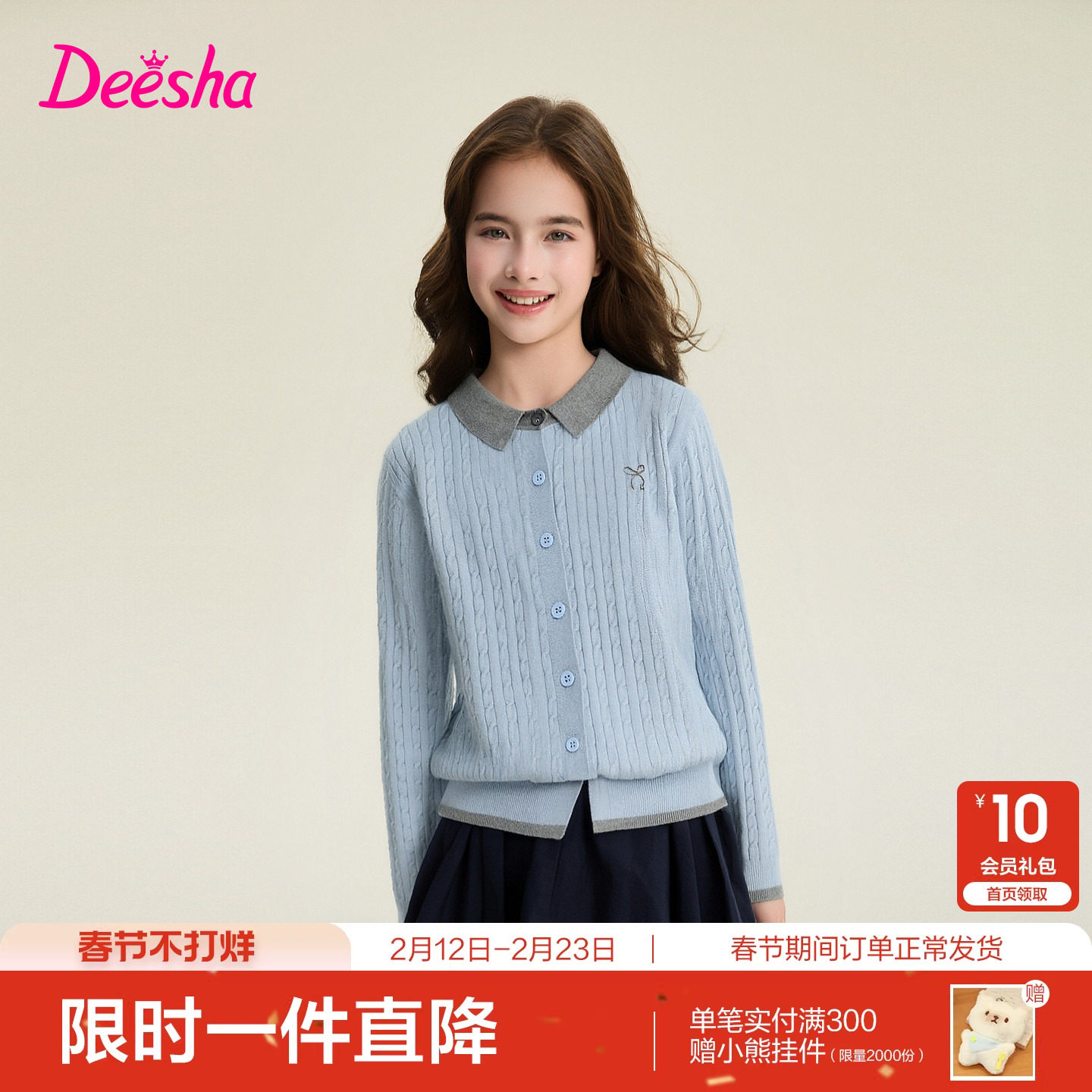 【学院风】笛莎官方旗舰女童针织开衫春秋季新款儿童翻领撞色外套